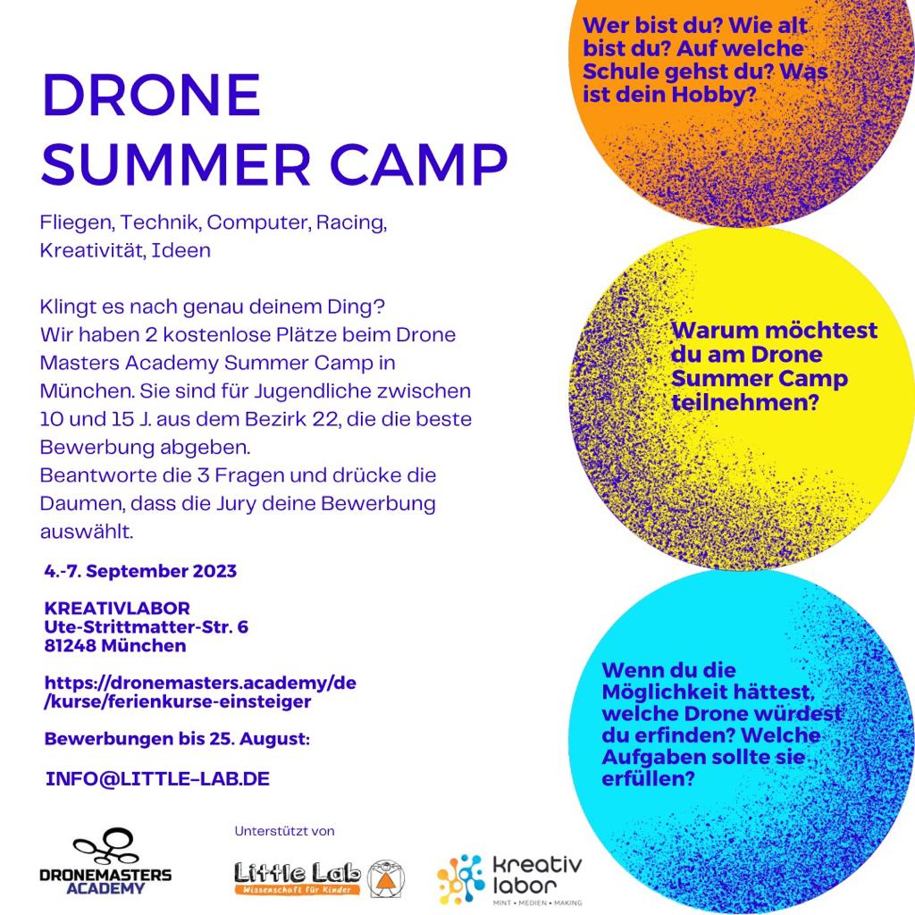 Der Workshop wird von Dronemasters Academy durchgeführt und im Rahmen von den Angeboten von Little Lab e.V. im Kreativlabor Freiham veranstaltet.